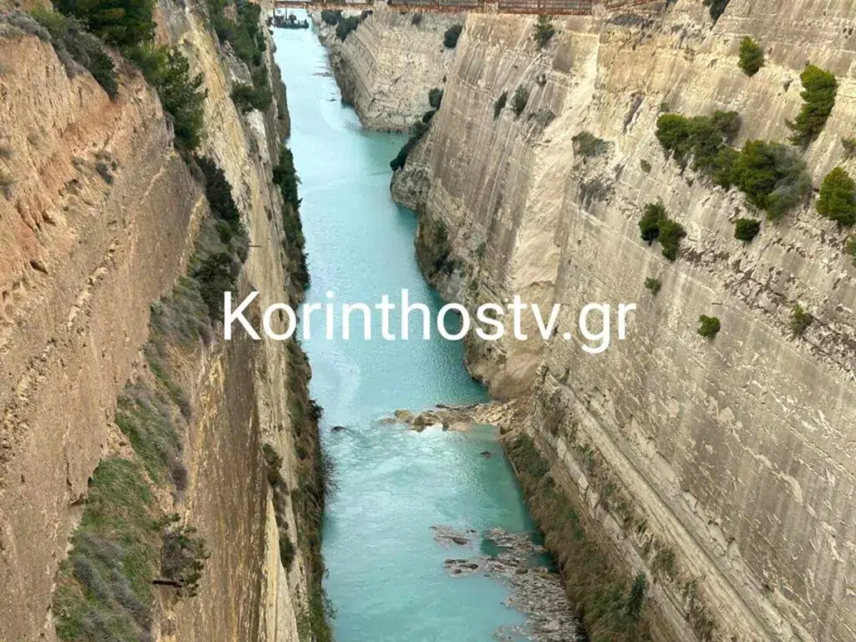 Στα πλάνα που ακολουθούν φαίνονται κομμάτια βράχων και χώμα να πέφτουν στη διώρυγα το πρωί της Παρασκευής 22 Δεκεμβρίου.