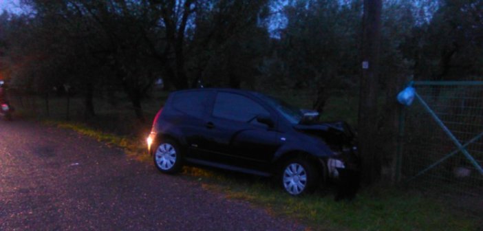 Κάτω από αδιευκρίνιστες συνθήκες πριν από λίγα λεπτά, εντοπίστηκε στην αγροτική περιοχή μεταξύ Αγίου Ιωάννη Ρηγανά και Τροχού ένα αυτοκίνητο μάρκας Citroen C2 το οποίο είχε πέσει πάνω σε κολώνα της ΔΕΗ. Ο οδηγός ωστόσο παραμένει άφαντος! Στο σημείο υπήρξε κινητοποίηση και κλήθηκε η Τροχαία Αγρινίου για να διαλευκάνει την υπόθεση και τα αίτια που το αυτοκίνητο εγκαταλείφθηκε από τον οδηγό του στο σημείο.