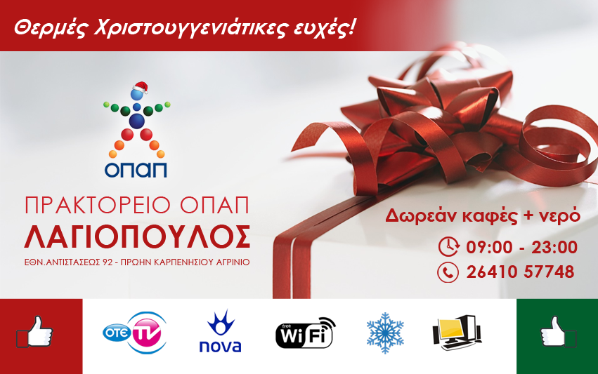 Άλλες Ειδήσεις Αγρίνιο: Ευχές, για τη νέα χρονιά από το πρακτορείο ΟΠΑΠ Λαγιόπουλος 30 Δεκ 2016 AgrinioTimes Share Tweet ☆ Ακολουθήστε μας στο Google News Σχετικά θέματα: Advertisement Τελευταία νέα →5 Δεκ 2025 19:41Δήμος Αγρινίου: Τριήμερη διακοπή κυκλοφορίας σε Τμήματα των Οδών Εθνικής Αντιστάσεως και Ιόλης5 Δεκ 2025 18:48Ερασιτέχνης Παναιτωλικός – Τμήμα Υδατοσφαίρισης: Τζώρτζης, Γρηγορόπουλος και Πετρόπουλος στο Αγρίνιο!5 Δεκ 2025 17:39Eurovision 2026: Ισπανία, Ολλανδία, Ιρλανδία και Σλοβενία δεν πάνε Αυστρία εξαιτίας της συμμετοχής του Ισραήλ5 Δεκ 2025 17:08Γιώργος Παπαναστασίου: Στη Μάλτα για τη Σύνοδο Κορυφής Ηγετών του Συμβουλίου Ευρωπαϊκών Δήμων και Περιφερειών5 Δεκ 2025 15:57«Το Σόι σου»: Η Σάντρα ξεκινά μαθήματα οδήγησης – Περιλήψεις επεισοδίων (05/12)5 Δεκ 2025 14:07ΕΛ.ΑΣ.: Στο Αγρίνιο συνελήφθησαν 3 ανήλικες για σωματική βλάβη και εξύβριση σε 13χρονη5 Δεκ 2025 13:46Λούτσα: Προφυλακίστηκε μία ημέρα πριν την κηδεία του 24χρονου από τις Παπαδάτες ο 29χρονος5 Δεκ 2025 13:29Αθανάσιος Ζαρκάδας: Πένθος στο Πυργί Αγρινίου για τον χαμό του 68χρονου5 Δεκ 2025 12:31SL1 – Γιώργος Λιάβας: Ο Αρχοντοχωρίτης έκανε προσφυγή κατά του Παναιτωλικού!5 Δεκ 2025 11:07Αλέξανδρος Ζαφείρης: Πενθούν στο Παναιτώλιο Αγρινίου για την απώλεια του 70χρονου