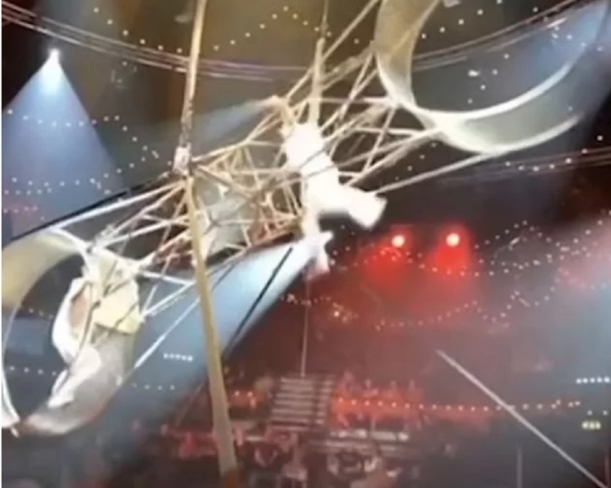 Η σοκαριστική πτώση ενός ακροβάτη από ύψος 5 μέτρων από έναν «γιγαντιαίο τροχό θανάτου» κατά τη διάρκεια ενός ακροβατικού νούμερου σε τσίρκο, καταγράφηκε από την κάμερα ενός θεατή της παράστασης.