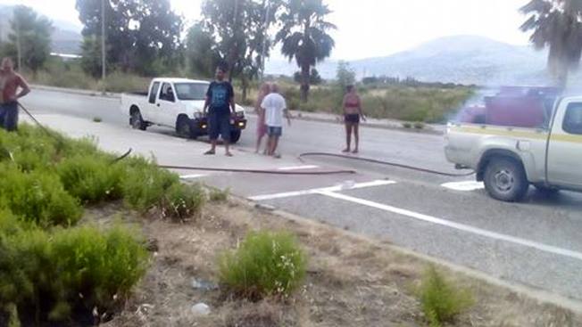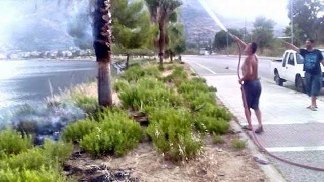Το όχημα του δήμου ήταν εκεί για να σβήσει την φωτιά μαζί με πολίτες του Αστακού. http://www.astakos-news.gr/