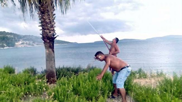 Ένας από τους φοίνικες που βρίσκεται στην παραλιακή είσοδο του Αστακού τυλίχθηκε στις φλόγες μετά τον κεραυνό που δέχθηκε από την καλοκαιρινή μπόρα που ξέσπασε σήμερα το απόγευμα.