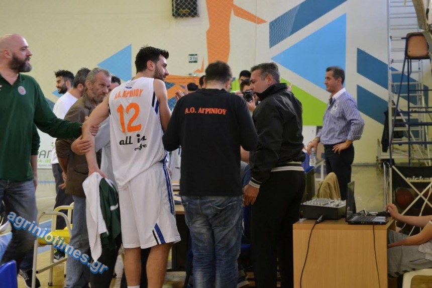 Δείτε τις φωτογραφίες, τη στιγμή που ο διαιτητής του παιχνιδιού Α.Ο. Αγρινίου – Φίλιππος Βέροιας προχώρησε στην προσωρινή διακοπή του αγώνα, διατάσσοντας και την εκκένωση της εξέδρας, διότι δέχθηκε την λεκτική επίθεση ενός φιλάθλου, για τον οποίο δεν έχει διευκρινιστεί αν πρόκειται για οπαδό της γηπεδούχου ή της φιλοξενούμενης ομάδας. Τη στιγμή που έγινε η διακοπή, το σκορ ήταν 31-18 υπέρ της ομάδας του Χρήστου Μυριούνη.
