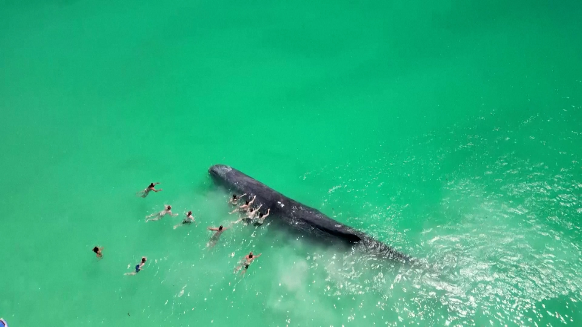 Μια μεγάλη φάλαινα εθεάθη να κολυμπά σε ρηχά νερά σε μια παραλία στο Περθ της Αυστραλίας, όπως έδειξε βίντεο που κατέγραψε αυτόπτης μάρτυρας το Σάββατο (9 Δεκεμβρίου).