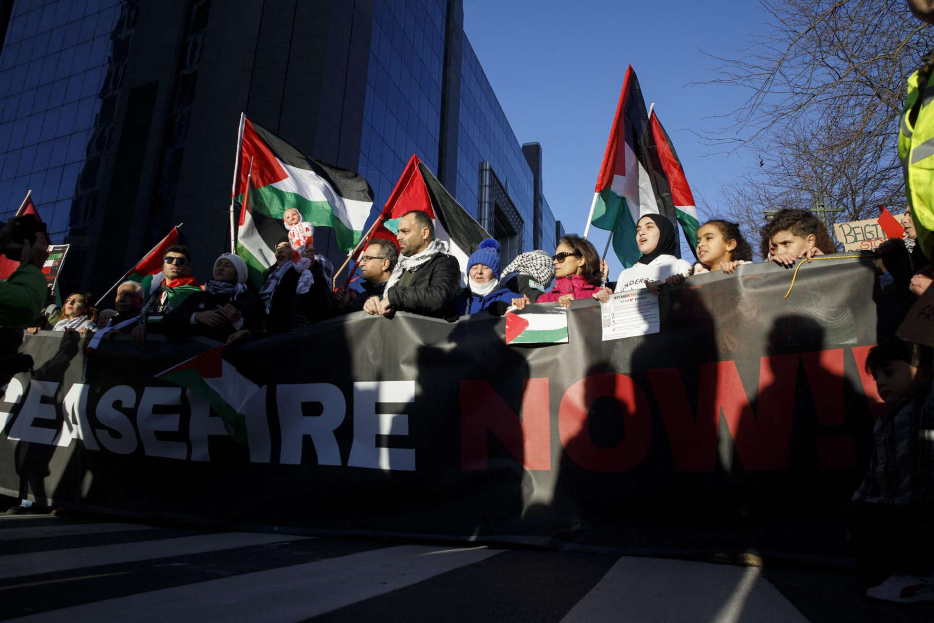 Οι διαδηλωτές, όπως αναφέρουν τα βελγικά μέσα ενημέρωσης, καλούν τη βελγική κυβέρνηση να κάνει ό,τι μπορεί έτσι ώστε το Ισραήλ να προχωρήσει σε «άμεση και μόνιμη» κατάπαυση του πυρός.