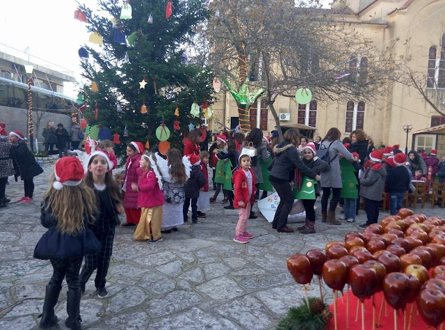 Μοιράστηκε ζεστό κρασί για τους μεγάλους και γλυκές Χριστουγεννιάτικες λιχουδιές για παιδιά και μεγάλους από τις γυναίκες του χωριού.
