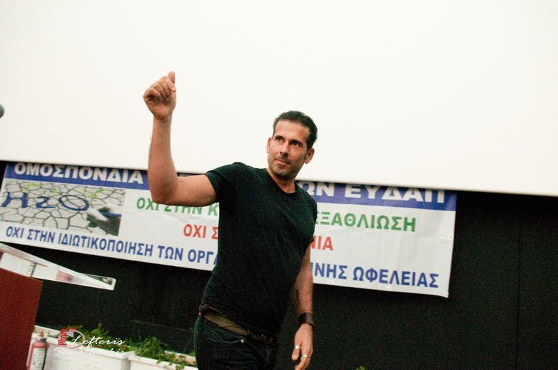 «Ξεκινάμε από αυτόν εδώ το χώρο, που ανήκει στους Εργαζόμενους της ΕΥΔΑΠ, για να σηματοδοτήσουμε ότι θα υπερασπιστούμε την περιουσία του λαού και της χώρας μας και τα δημόσια αγαθά, που ο σφετερισμός τους αποτελεί εγκληματική πράξη εντασσόμενη στο έγκλημα του Μνημονίου.