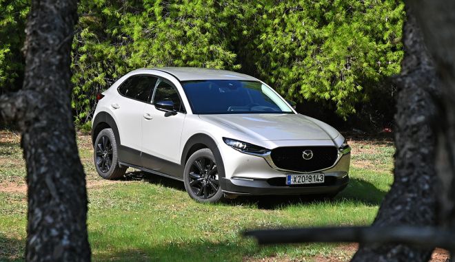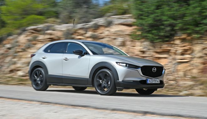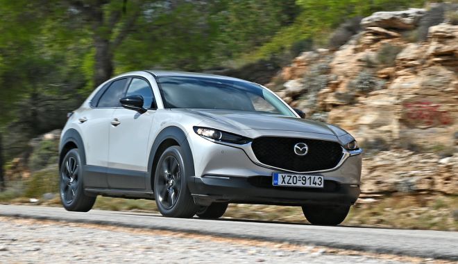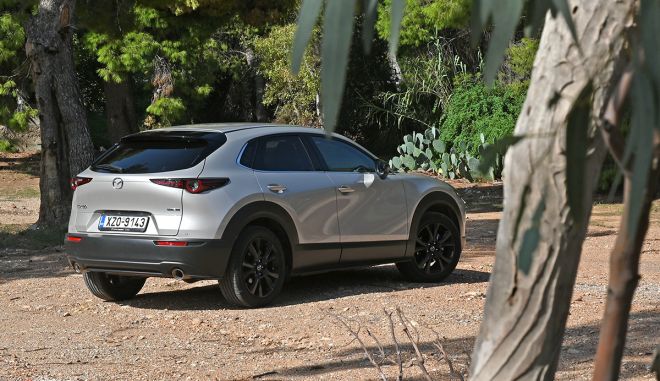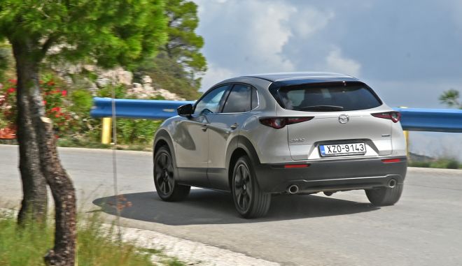 Ίσως είναι υποκειμενικό ότι το CX-30 είναι το ομορφότερο SUV της Mazda, με το χαμηλό του ρύγχος και την coupe τρίτη κολόνα, αλλά μάλλον είναι πιο κοινή παραδοχή ότι -σε αντίθεση με πολλά άλλα SUV- οδηγώντας το αισθάνεσαι κάτι. Σαν να πλανιέται εκεί λίγο το πνεύμα του ΜΧ-5, η αίσθηση του τιμονιού και του κιβωτίου του, που όποιος την έχει ζήσει δεν την ξεχνά ποτέ.