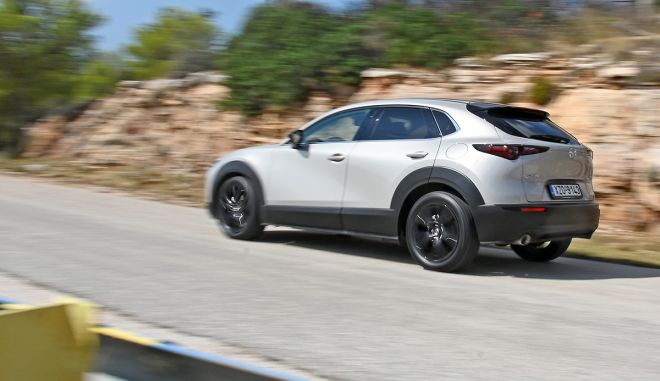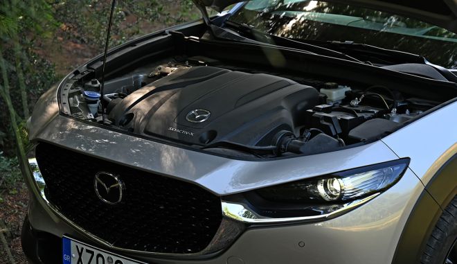 Από όλες τις ξεχωριστές πτυχές του CX-30, ίσως η πιο ιδιαίτερη είναι του κινητήρα: παρότι είναι δίλιτρος μπορεί κάλλιστα να κρατά -με λίγη προσοχή του οδηγού- την κατανάλωση στα 7,0 lt/100km, ενώ παράλληλα με τη δύναμη των 186 ίππων και το απόθεμα των 240 Nm του μπορεί να επιταχύνει τα 1.443 κιλά του αμαξώματος -συν τον οδηγό- στα 0-100 km/h σε 8,3 δευτερόλεπτα.