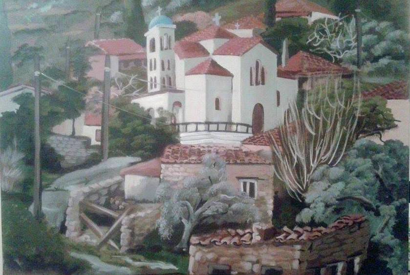 | Κυπάρισσος, στο κέντρο ο Ι.Ν.Αγίας Παρασκευής, ακρυλικά σε καμβά 60*70 |
