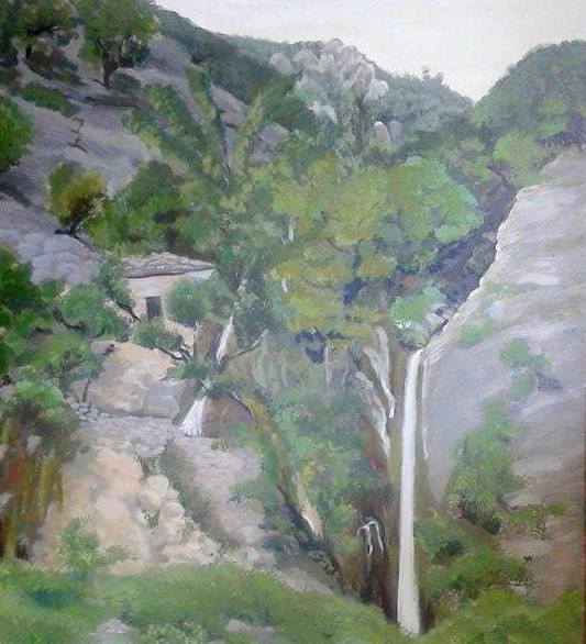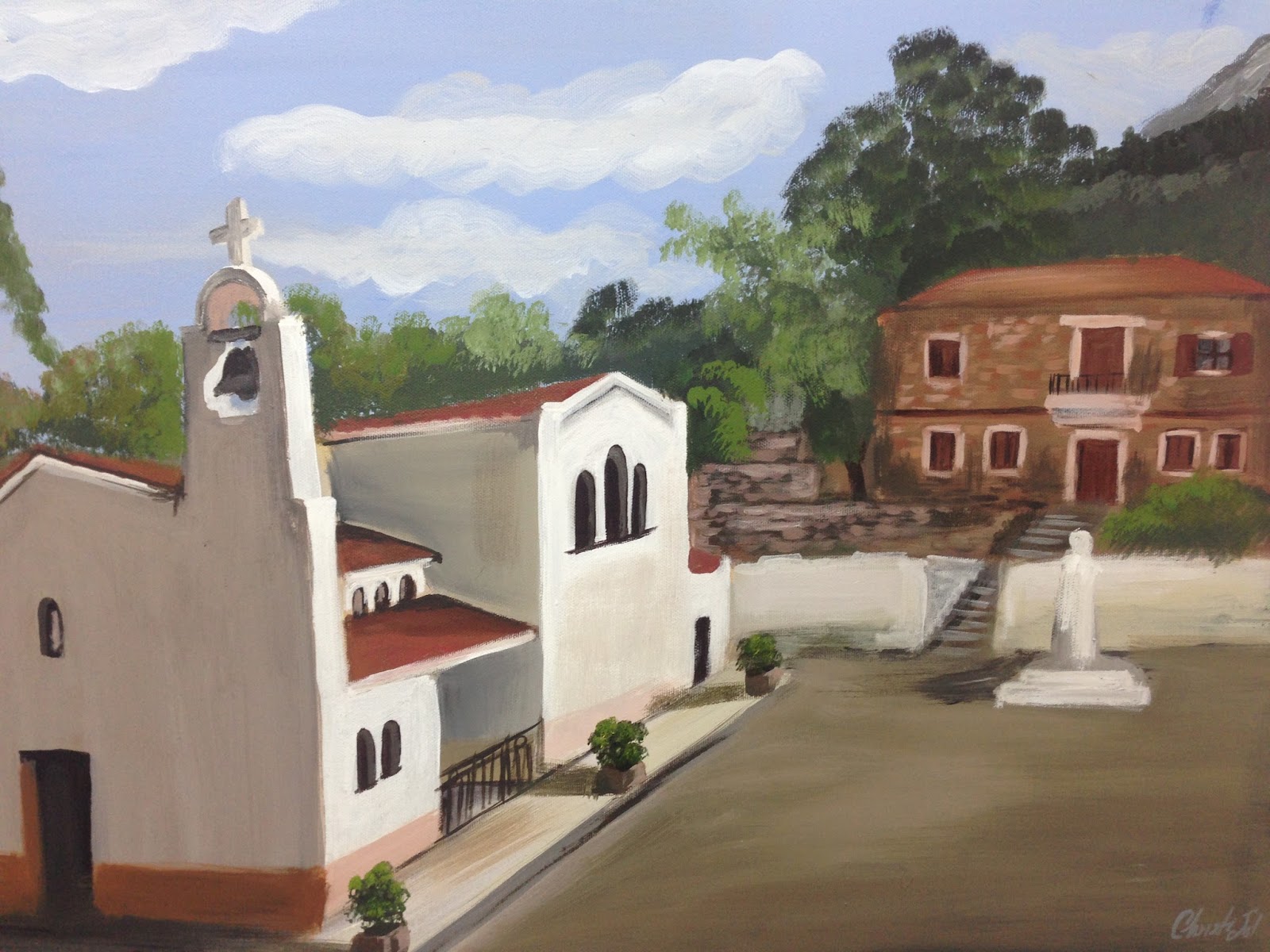 και κάτω αριστερά ο Ι.Ν.Αγίου Γεωργίου την Ποταμούλα. Ακρυλικά σε καμβά 50*70 |