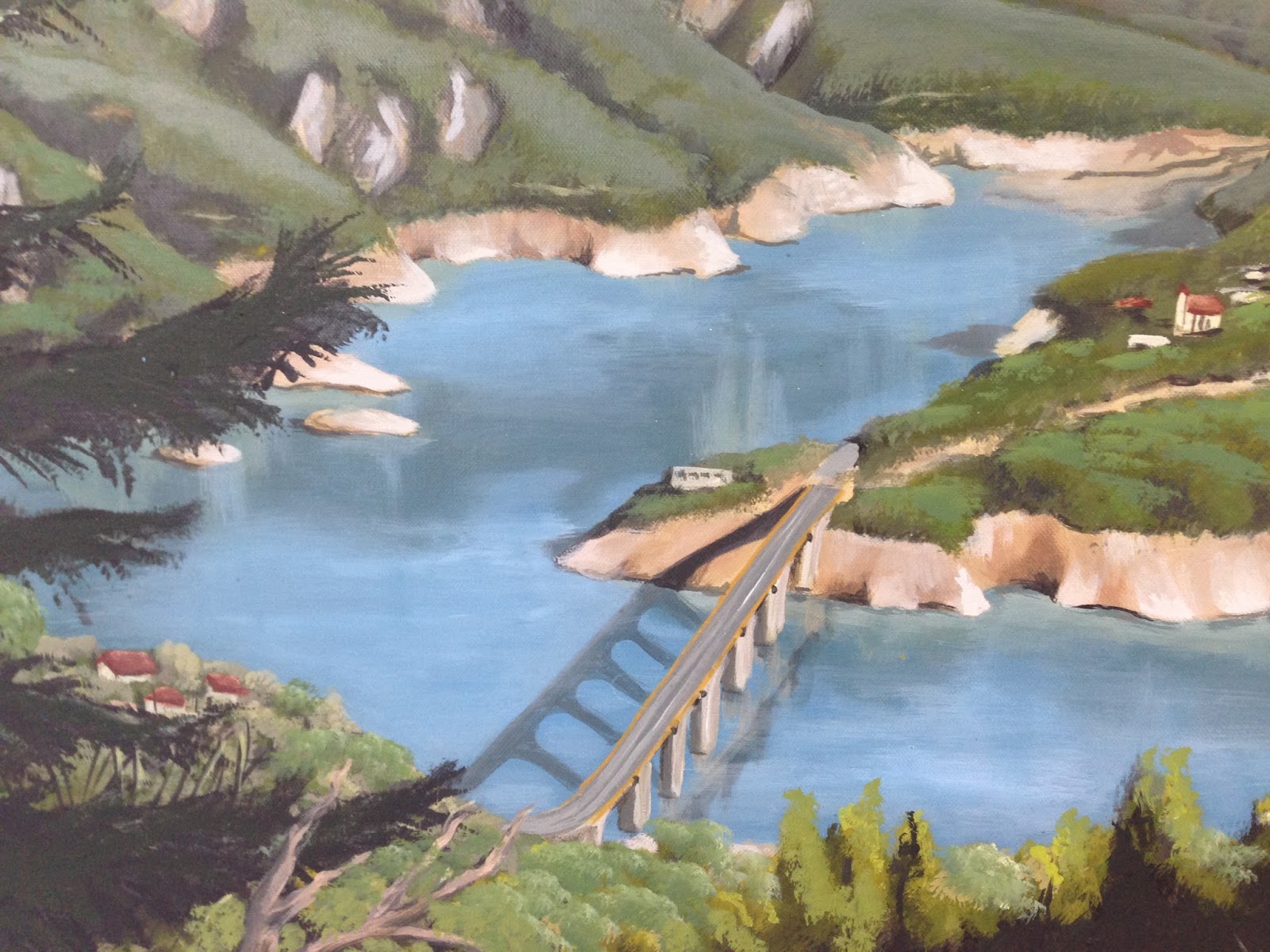| Η Λίμνη των Κρεμαστών και η γέφυρα της Επισκοπής. Ακρυλικά σε καμβά 50*70 |