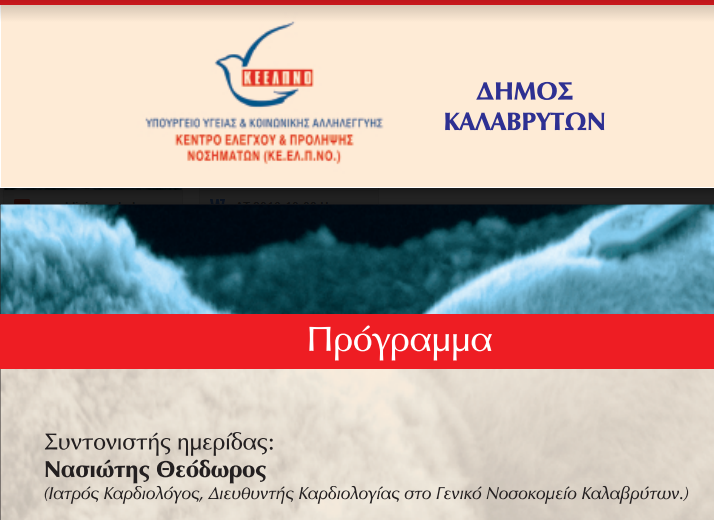 Συντονιστής της Ημερίδας ο Περιφερειακός Σύμβουλος Δυτικής Ελλάδας Θεόδωρος Νασιώτης, Ιατρός Καρδιολόγος, Διευθυντής Καρδιολογίας Γενικού Νοσοκομείου Καλαβρύτων.