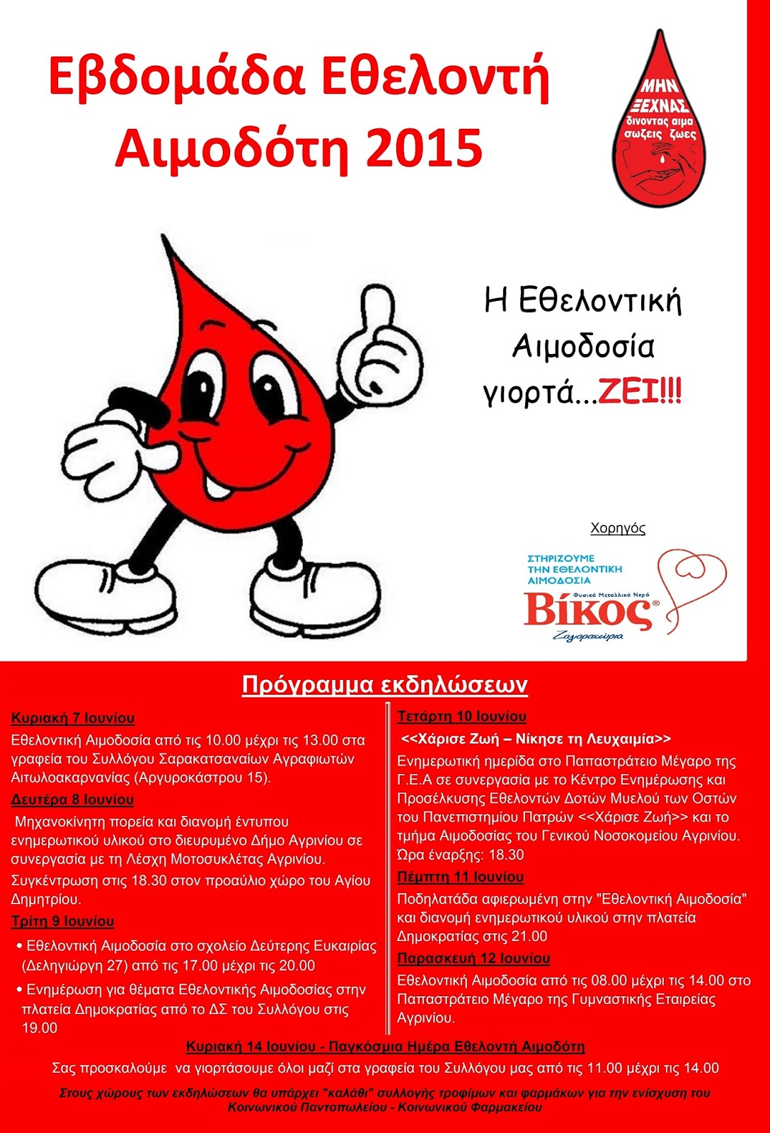 Η Εθελοντική Αιμοδοσία γιορτάζει! Πρόγραμμα εκδηλώσεων