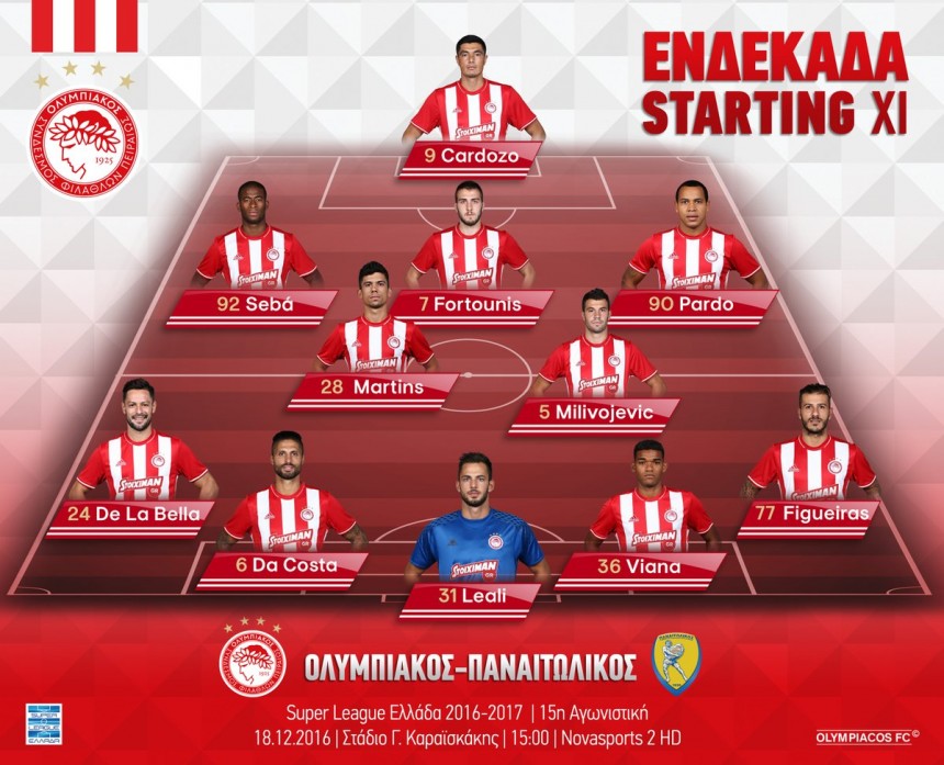 Η ενδεκάδα του Ολυμπιακού για το ματς με τον Παναιτωλικό