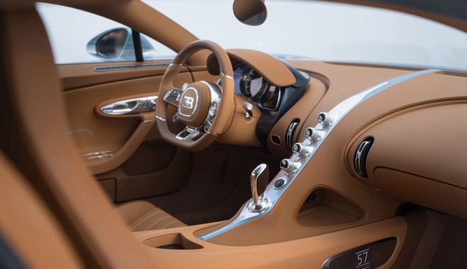 H πρώτη παρέμβαση της Bugatti Sur Mesure στην εξειδικευμένη και μοναδική αυτή έκδοση της Chiron είναι φυσικά το χρώμα: το γαλάζιο μεταλλικό που προσεγγίζει όσο το δυνατόν πιο πιστά εκείνο της Type 57 SC Atlantic.