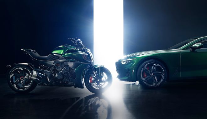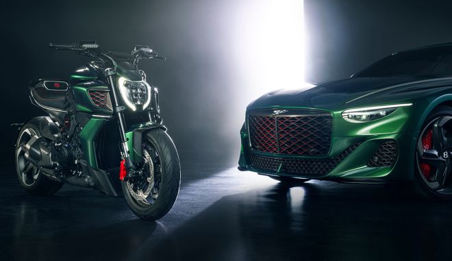 Περνώντας στα μηχανικά, αρχικά πρέπει να πούμε ότι με τους 740 ίππους του 12κύλινδρου -σε διάταξη W- κινητήρα της η Batur είναι το ισχυρότερο αυτοκίνητο παραγωγής που έχει δημιουργήσει ποτέ η Bentley. Αντίστοιχα, η “Diavel for Bentley” διαθέτει τον πανίσχυρο κινητήρα V4 Granturismo των 1.158 κ.εκ., που αποδίδει 168 ίππους – αλλά είναι ταυτόχρονα εξαιρετικά συμπαγής, ελαφρύς και αποδοτικός και στις χαμηλές στροφές.