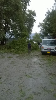 Από την χαλαζόπτωση και τον δυνατό αέρα ξεριζώθηκαν δένδρα. Σημαντικές ζημιές, έπαθαν και οι ελιές και διάφορα άλλα δέντρα καθώς ο αέρας και το χαλάζι τα ξερίζωσε κυριολεκτικά.