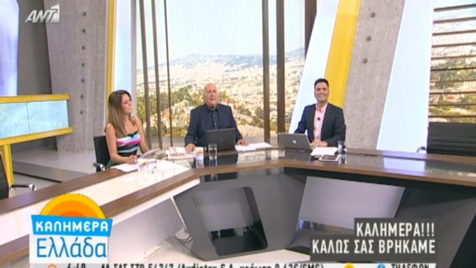 Πρεμιέρα για την εκπομπή Καλημέρα Ελλάδα το πρωί της Δευτέρας. Ένα τέταρτο πριν τις επτά, ο Γιώργος Παπαδάκης υποδέχτηκε τους τηλεθεατές μαζί με τον Ντίνο Σιωμόπουλο και τη Μπάγια Αντωνοπούλου στο ανανεωμένο τους πλατό: «Με χαρά σας υποδεχόμαστε στο καινούριο μας σπίτι, το καινούριο μας σκηνικό που μετά από 7,8,9,10 χρόνια εδέησε ο Κύριος…»