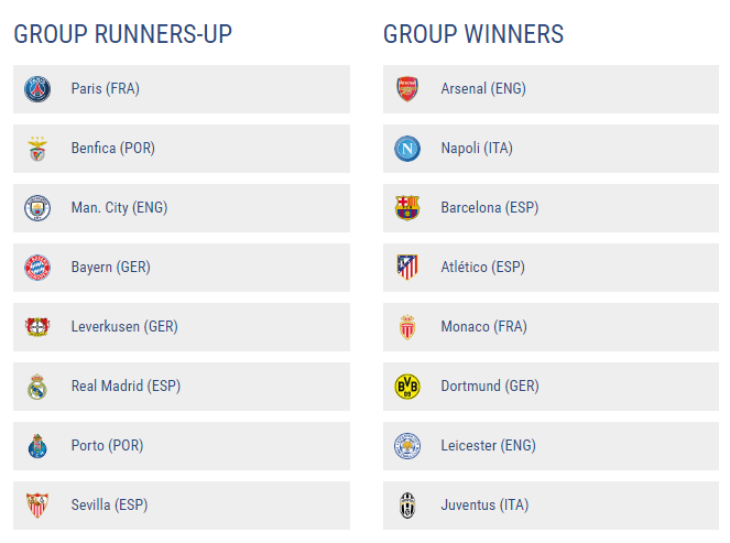 Θυμίζουμε, πως στην συγκεκριμένη φάση δε μπορούν να διασταυρώσουν τα ξίφη τους ομάδες που ήταν στον ίδιο όμιλο, αλλά ούτε και ομάδες που προέρχονται από την ίδια χώρα.