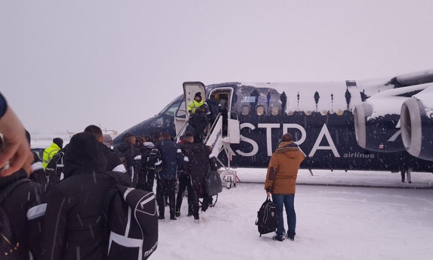 Παρόλα αυτά, επρόκειτο για μια από τις πιο δύσκολες αναχωρήσεις αποστολής του ΠΑΟΚ για εκτός έδρας παιχνίδι, αφού το αεροπλάνο παρέμεινε καθηλωμένο για μια περίπου ώρα προκειμένου να γίνει η διαδικασία της αποπαγοποίησης προτού πετάξει.