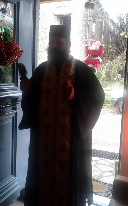 Χθες στο χωριό Μαχαιράς Ξηρομέρου, παραμονή των Φώτων και ο παπα-Νικόδημος επισκέφτηκε όλα τα σπίτια και με το Σταυρό και ένα κλωνί βασιλικό «αγιάζει» και «φωτίζει», ραντίζει τους χώρους των σπιτιών για να φύγει μακριά κάθε κακό.