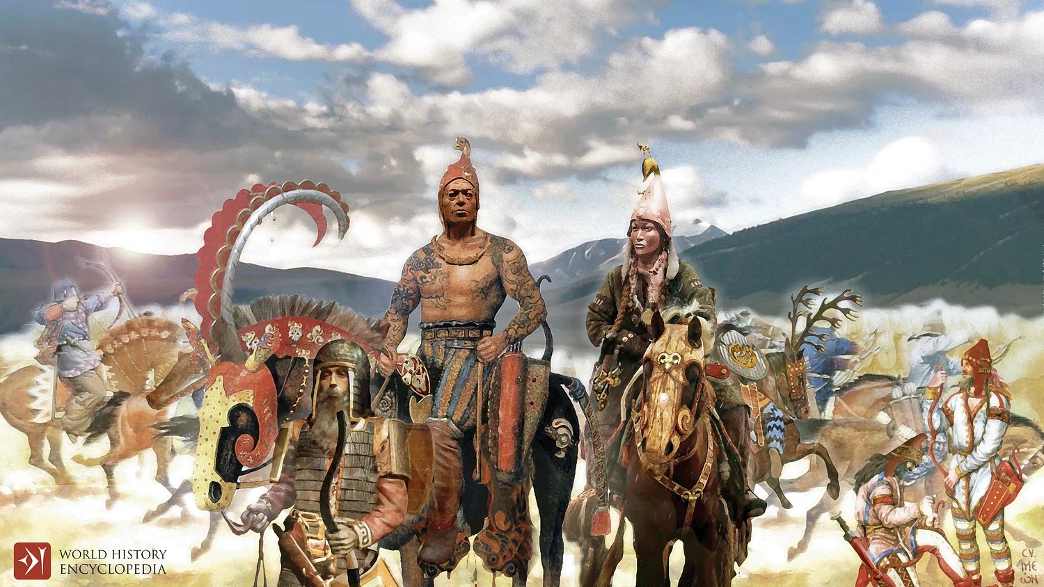 Οι Σκύθες ήταν νομαδικός λαός του οποίου ο πολιτισμός άνθισε μεταξύ του 7ου και του 3ου αι. π.Χ. σε μια περιοχή που εκτεινόταν κατά μήκος της ευρασιατικής στέπας, από τη Θράκη στα δυτικά έως την Οροσειρά Αλτάι της Μογγολίας στα ανατολικά. Θεωρούνταν εξαιρετικοί έφιπποι και επιδέξιοι τοξότες και συχνά έβρισκαν απασχόληση ως μισθοφόροι. Σύμφωνα με τους ερευνητές οι Σκύθες έπαιξαν καθοριστικό ρόλο στη μεταφορά γλωσσών, αγαθών, τεχνολογίας, ιδεολογιών, ακόμη και ασθενειών.