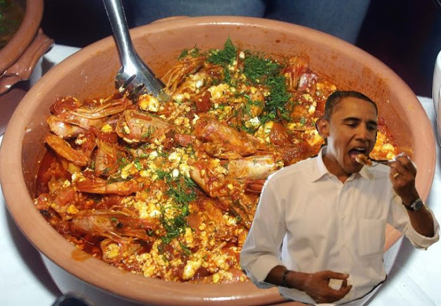 Με γαρίδες Αμβρακικού Βόνιτσας, σφυρίδα Λευκάδας, ρεβανί απο Κατούνα και κρασί απο την Πάλαιρο το δείπνο του Ομπάμα