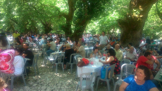 Ακολούθησαν τα χορευτικά με παραδοσιακές στολές, μοιράστηκε στους επισκέπτες ψητή προβατίνα και στη συνέχεια έγινε ένα μεγάλο, όμορφο γλέντι, υπό τους ήχους τού κλαρίνου και με πολύ κέφι για χορό και τραγούδι……
