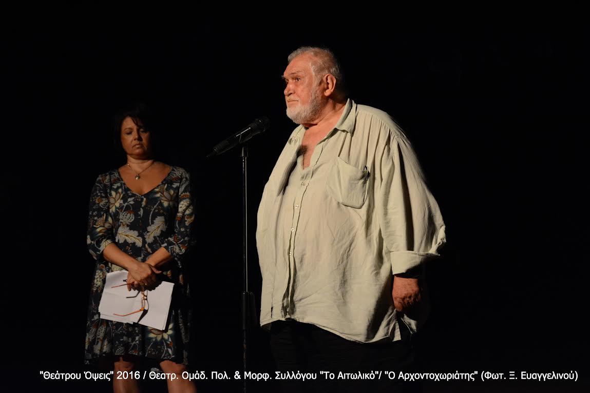 Με την τιμητική παρουσία του σημαντικού σκηνοθέτη και ηθοποιού κ. Κώστα Καζάκου, έκλεισε με επιτυχία η 5η Θεατρική Συνάντηση Ερασιτεχνικών Ομάδων “Θεάτρου Όψεις”, Αιτωλικό 2016