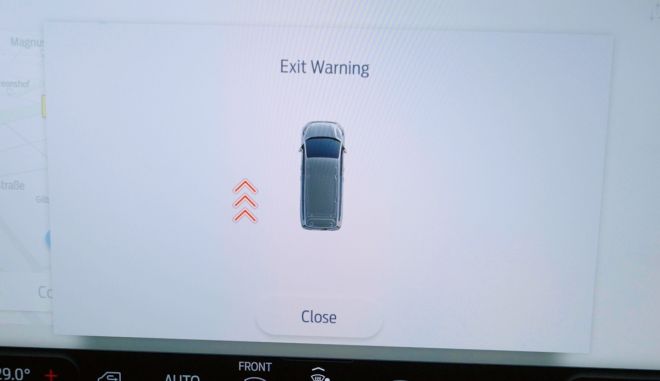 Τόσο το ραντάρ, όσο και οι εξωτερικοί αισθητήρες βοηθούν να εντοπιστεί πότε μια πόρτα που ανοίγει μπορεί να προκαλέσει σύγκρουση με διερχόμενο χρήστη του δρόμου ενεργοποιώντας τις ενδείξεις LED στους καθρέπτες των θυρών, καθώς και μια ειδοποίηση στο ταμπλό. Για την αποφυγή της άσκοπης ενεργοποίησης του, το σύστημα λειτουργεί μόνο όταν η ταχύτητα κίνησης των άλλων χρηστών του δρόμου υπερβαίνει τα 7 χλμ./ώρα.