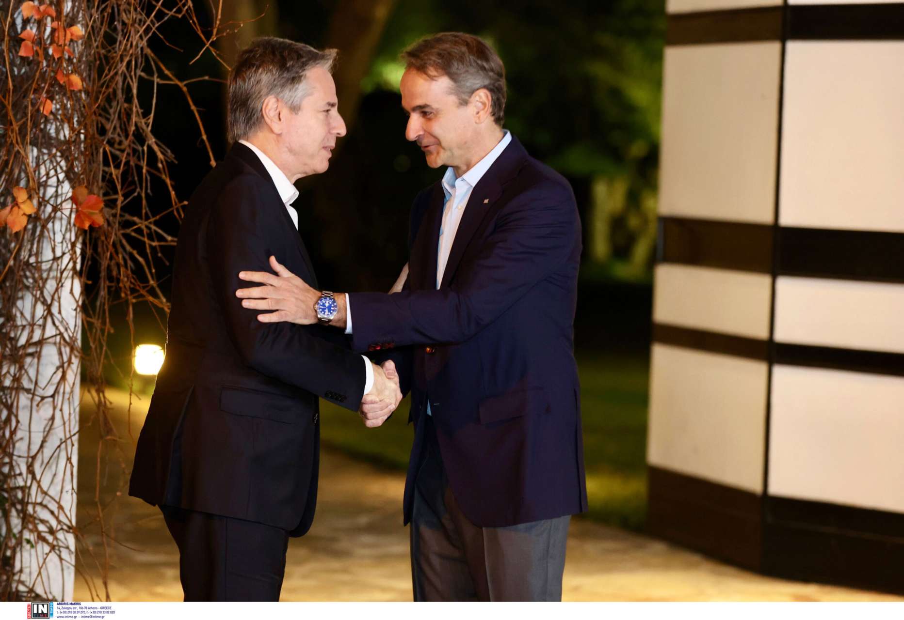 Σε εξέλιξη βρίσκεται η συνάντηση του υπουργού Εξωτερικών των ΗΠΑ Άντονι Μπλίνκεν με τον Κυριάκο Μητσοτάκη στην οικία του πρωθυπουργού στα Χανιά.