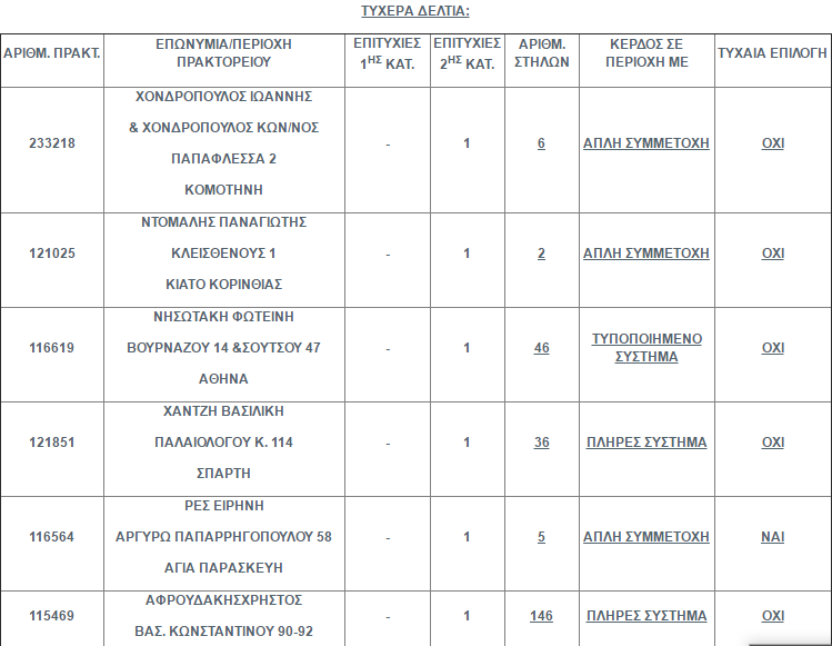 Επίσης στην δεύτερη κατηγορία (5άρια) βρέθηκαν 6 τυχερά δελτία κάθε ένα από τα οποία κερδίζει το ποσό των € 91.362,12