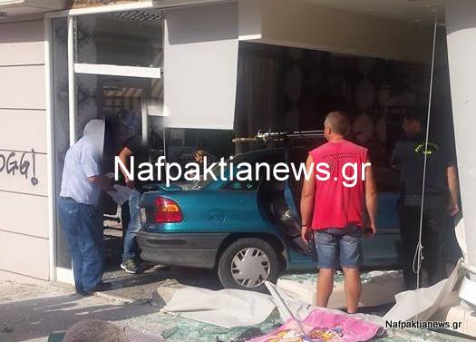 Ναύπακτος: Ι.Χ. καρφώθηκε σε βιτρίνα καταστήματος μετά από σύγκρουση (Φωτό – βίντεο)