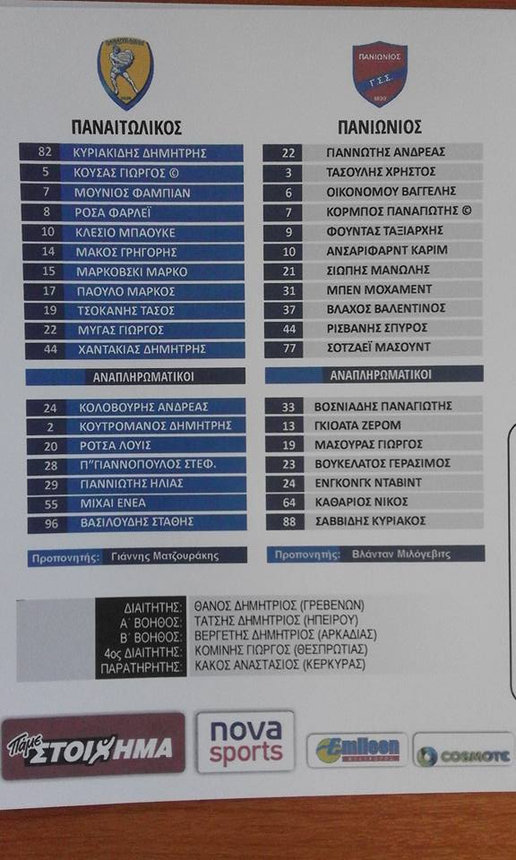 Οι ενδεκάδες του αγώνα Παναιτωλικός – Πανιώνιος