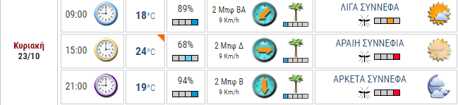 Ο καιρός στο Αγρίνιο, σήμερα (Κυριακή, 23/10)
