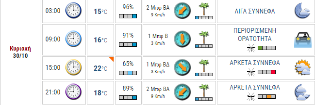 Ο καιρός στο Αγρίνιο σήμερα (Κυριακή, 30/10)