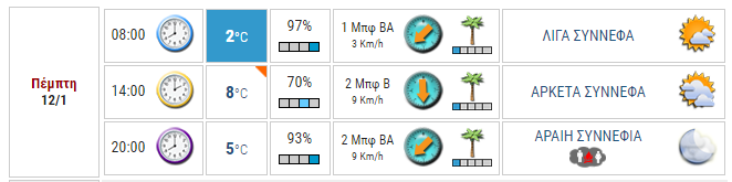 Ο καιρός στο Αγρίνιο σήμερα (Πέμπτη, 12/01)