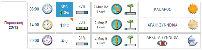 Ο καιρός στο Αγρίνιο σήμερα (Παρασκευή, 23/12)