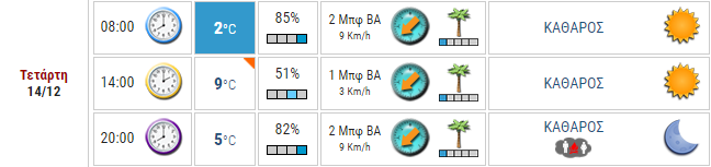 Ο καιρός στο Αγρίνιο σήμερα (Τετάρτη, 14/12)