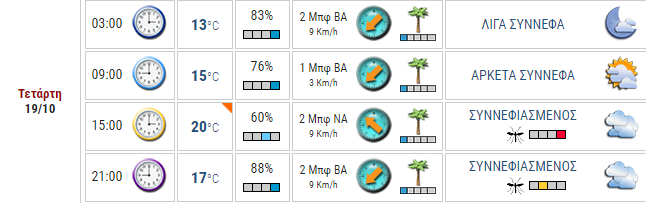 Άλλες Ειδήσεις Ο καιρός στο Αγρίνιο, σήμερα (Τετάρτη, 19/10) 19 Οκτ 2016 AgrinioTimes Share Tweet ☆ Ακολουθήστε μας στο Google News Σχετικά θέματα: Advertisement Τελευταία νέα →2 Απρ 2026 01:37Γεγονότα που σημειώθηκαν σαν σήμερα (02/04)2 Απρ 2026 01:31Ο Καιρός (02/04): Βροχές και καταιγίδες στο Αγρίνιο, έως 14 βαθμούς Κελσίου η θερμοκρασία1 Απρ 2026 23:59Σκάνδαλο Ο.Π.Ε.Κ.Ε.Π.Ε.: Στη νέα δικογραφία 11 Βουλευτές της Νέας Δημοκρατίας – Μεταξύ τους και νυν Υπουργοί1 Απρ 2026 22:08Δήμος Αγρινίου: Διανομή νωπού αρνίσιου κρέατος και άλλων ειδών διατροφής από το Κοινωνικό Παντοπωλείο1 Απρ 2026 21:38Σπύρος Διαμαντόπουλος: «Έχει δημιουργηθεί ψεύτικο προφίλ που χρησιμοποιεί το όνομά μου και την εικόνα μου»1 Απρ 2026 20:40Γιάννης Κυράστας: Πέρασαν 22 χρόνια από τον θάνατό του και η Α.Ε.Μ. δεν τον ξεχνά!1 Απρ 2026 20:09Συνάντηση Κώστα Καραγκούνη – Άδωνι Γεωργιάδη για την ενίσχυση των Δομών Υγείας στην Αιτωλοακαρνανία1 Απρ 2026 19:06Stoiximan SL1 – Παναιτωλικός: Από 6 ευρώ τα εισιτήρια για το πρώτο εντός έδρας ματς των Play Outs!1 Απρ 2026 18:46Θωμάς Δράκος: Απέραντη θλίψη στον Μαχαιρά Ξηρομέρου για την απώλεια του 63χρονου πολύτεκνου πατέρα1 Απρ 2026 17:02ΑΝΤ1 – Θανάσης Κατερινόπουλος: Συνεχίζει ο Αγρινιώτης κανονικά στο πάνελ του Πέτρου Κουσουλού!