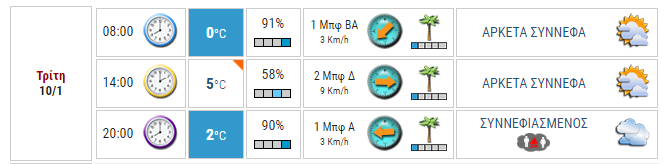 Ο καιρός στο Αγρίνιο σήμερα (Τρίτη, 10/01)