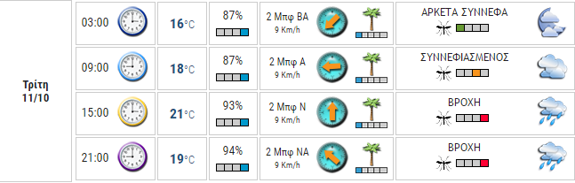 Ο καιρός στο Αγρίνιο σήμερα (Τρίτη, 11/10)