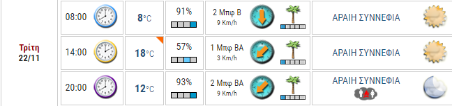 Άλλες Ειδήσεις Ο καιρός στο Αγρίνιο σήμερα (Τρίτη, 22/11) 22 Νοέ 2016 AgrinioTimes Share Tweet meteo.gr ☆ Ακολουθήστε μας στο Google News Σχετικά θέματα: Advertisement Τελευταία νέα →2 Απρ 2026 18:26Σωκράτης Φάμελλος: Πρώτα στη Ναύπακτο και μετά για… διήμερο στο Μεσολόγγι!2 Απρ 2026 17:36Ατρόμητος Αθηνών: Πρώτα στο Star Channel και το «MasterChef 2026» και από Παρασκευή στο Αγρίνιο!2 Απρ 2026 14:00Παναγιώτης Νταλακούρας: Σε ηλικία 69 ετών άφησε την τελευταία του πνοή, πατέρας ενός παιδιού2 Απρ 2026 13:49Καμαρούλα Αγρινίου: Χάθηκε ο Κανέλος, δηλώθηκε στην Αστυνομία η εξαφάνιση του τετράποδου2 Απρ 2026 13:34Κυριάκος Μητσοτάκης: Την Κυριακή των Βαΐων στο Μεσολόγγι για τις Εορτές Εξόδου 20262 Απρ 2026 13:16Άγιος Κωνσταντίνος Αγρινίου: Φωτιά στην κουζίνα σπιτιού οδήγησε ηλικιωμένη στο Νοσοκομείο2 Απρ 2026 11:02Τροχαίο κοντά στο Δημοτικό Αθλητικό Κέντρο Αγρινίου, όχημα Οδικής Βοήθειας στο σημείο2 Απρ 2026 10:44Ημερήσιες Προβλέψεις για τα Ζώδια (02/04)2 Απρ 2026 10:38Εορτολόγιο: 02 Απριλίου τιμάται από την Εκκλησία ο Όσιος Τίτος ο Θαυματουργός2 Απρ 2026 01:37Γεγονότα που σημειώθηκαν σαν σήμερα (02/04)