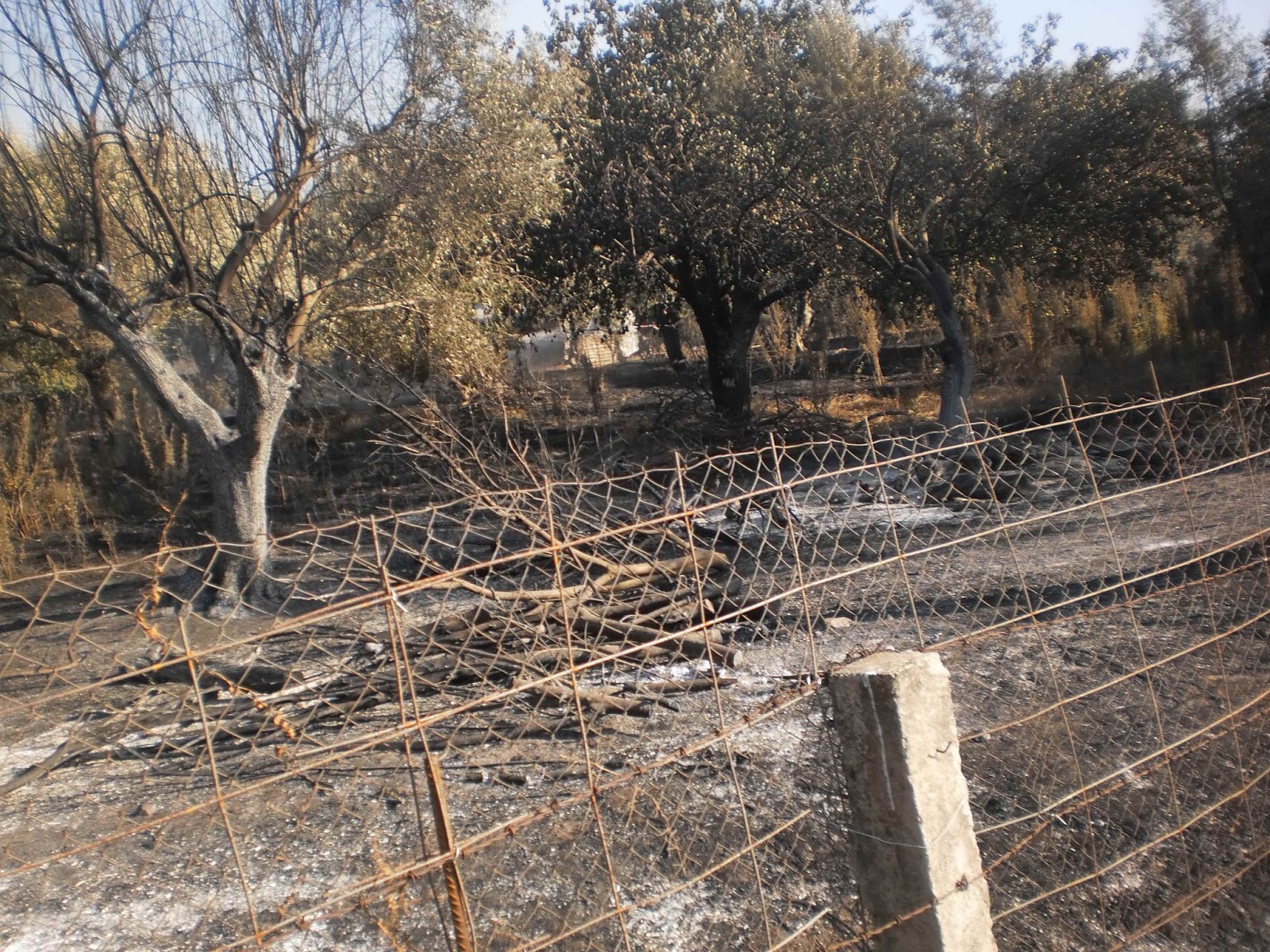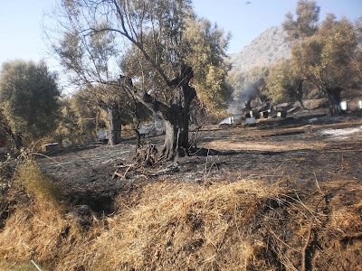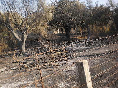 Κάηκαν αρκετές ελιές, μελίσσια και αμπέλια, ενώ η φωτιά δεν έχει τεθεί πλήρως υπό έλεγχο. Στο “παρά τρίχα” σώθηκε και κτηνοτροφική μονάδα – η φωτιά έφτασε μέχρι την πόρτα της…