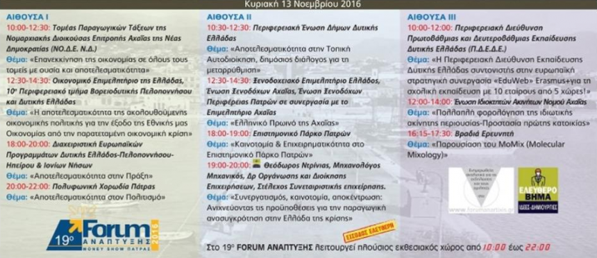Δυτική Ελλάδα Πάτρα: Το πρόγραμμα του 19oυ forum Ανάπτυξης 8 Νοέ 2016 AgrinioTimes Share Tweet ☆ Ακολουθήστε μας στο Google News Σχετικά θέματα: Advertisement Τελευταία νέα →23 Οκτ 2025 01:04Ημερήσιες Προβλέψεις για τα Ζώδια (23/10)23 Οκτ 2025 00:56Εορτολόγιο: 23 Οκτωβρίου τιμάται από την Εκκλησία ο Άγιος Ιάκωβος ο Αδελφόθεος23 Οκτ 2025 00:49Γεγονότα που σημειώθηκαν σαν σήμερα (23/10)23 Οκτ 2025 00:15Ο Καιρός (23/10): Βροχές και καταιγίδες στο Αγρίνιο, έως 20 βαθμούς Κελσίου η θερμοκρασία22 Οκτ 2025 23:56Λόττο: Σε έναν Ναυπάκτιο «χαμογέλασε» η τύχη – 1.000 ευρώ κάθε μήνα για έναν χρόνο22 Οκτ 2025 23:06Μακρυνεία: Στην Παραλία Καψοράχης ένας εκπαιδευόμενος σκύλος εντόπισε φόλες22 Οκτ 2025 22:17«Άγνωστος Στρατιώτης»: Πέρασε με 159 «ναι» η Τροπολογία – «Καρφιά» Γεωργιάδη σε Δένδια22 Οκτ 2025 21:19Ντίνα Τσενικλόγλου: Στο Μεσολόγγι το τελευταίο «αντίο» – Η συγκινητική ανάρτηση του συζύγου της για τη «Φλόγα»22 Οκτ 2025 21:02Ι.Ν. Αγίου Δημητρίου Αγρινίου: Ο Μητροπολίτης Ναυπάκτου Ιερόθεος παρουσίασε το νέο του βιβλίο22 Οκτ 2025 20:27Λάμπρος Κοσυφαρίνης: Άφησε την τελευταία του πνοή σε ηλικία 73 ετών, θλίψη στα Τριανταίικα
