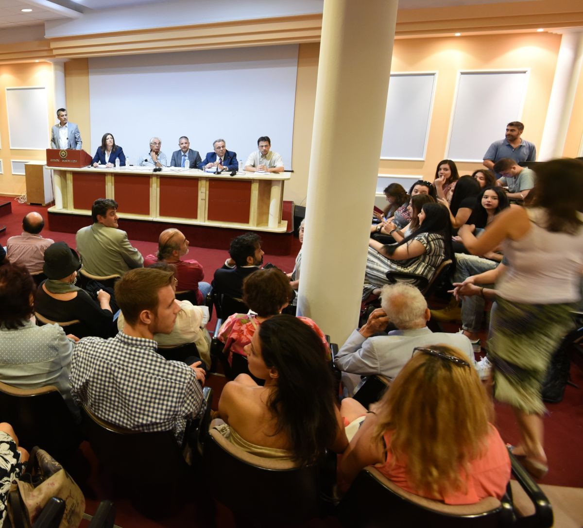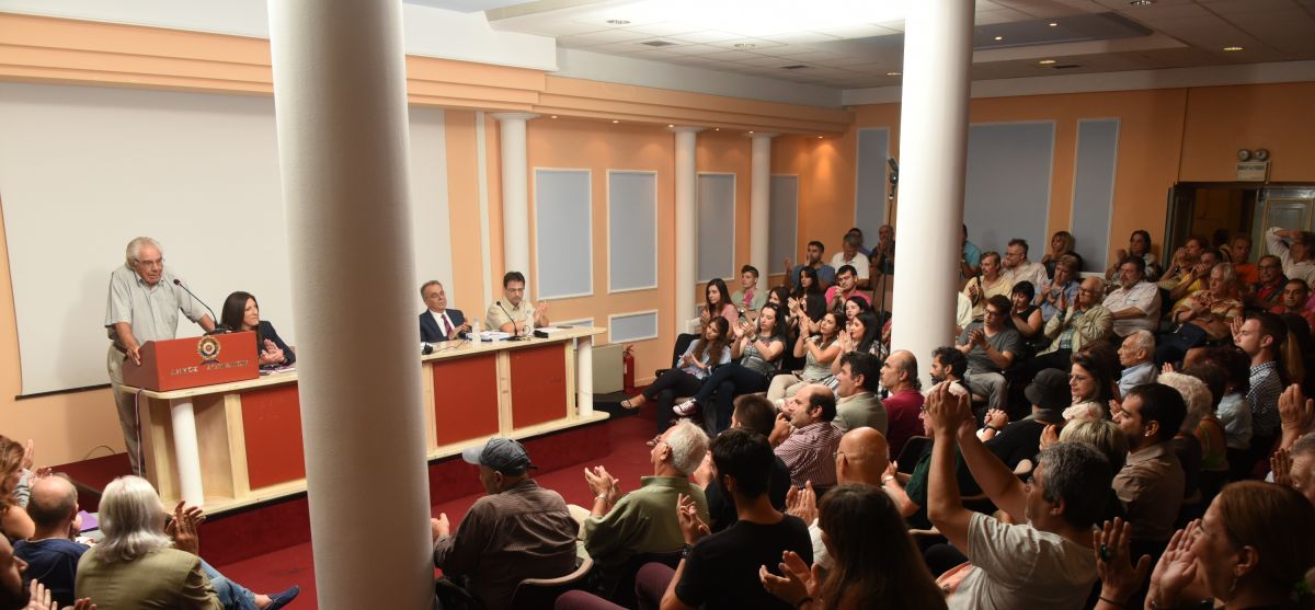 Γιώργος Κασιμάτης, Σοφία Σακοράφα, Στράτος Γεωργούλας, Φώτης Μαζαράκης, Δημήτρης Κλούρας στην πρώτη γραμμή