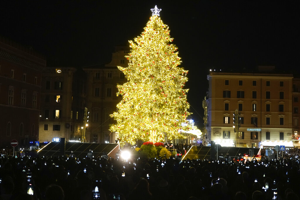 Πόλεις και χωριά σε όλο τον κόσμο μπαίνουν στο πνεύμα των Χριστουγέννων. Το υψηλότερο δέντρο του κόσμου ύψους 750 μέτρων, που κατέχει και το ρεκόρ Γκίνες, βρίσκεται στην κεντρική Ιταλία. Γιγαντιαία φάτνη 19 μέτρων κοσμεί το Αλικάντε της Ισπανίας ενώ στην Ουκρανία, οι κάτοικοι του Κιέβου στόλισαν μόνοι το δέντρο της πόλης με αφιέρωση στους στρατιώτες που είναι στα πεδία των μαχών.