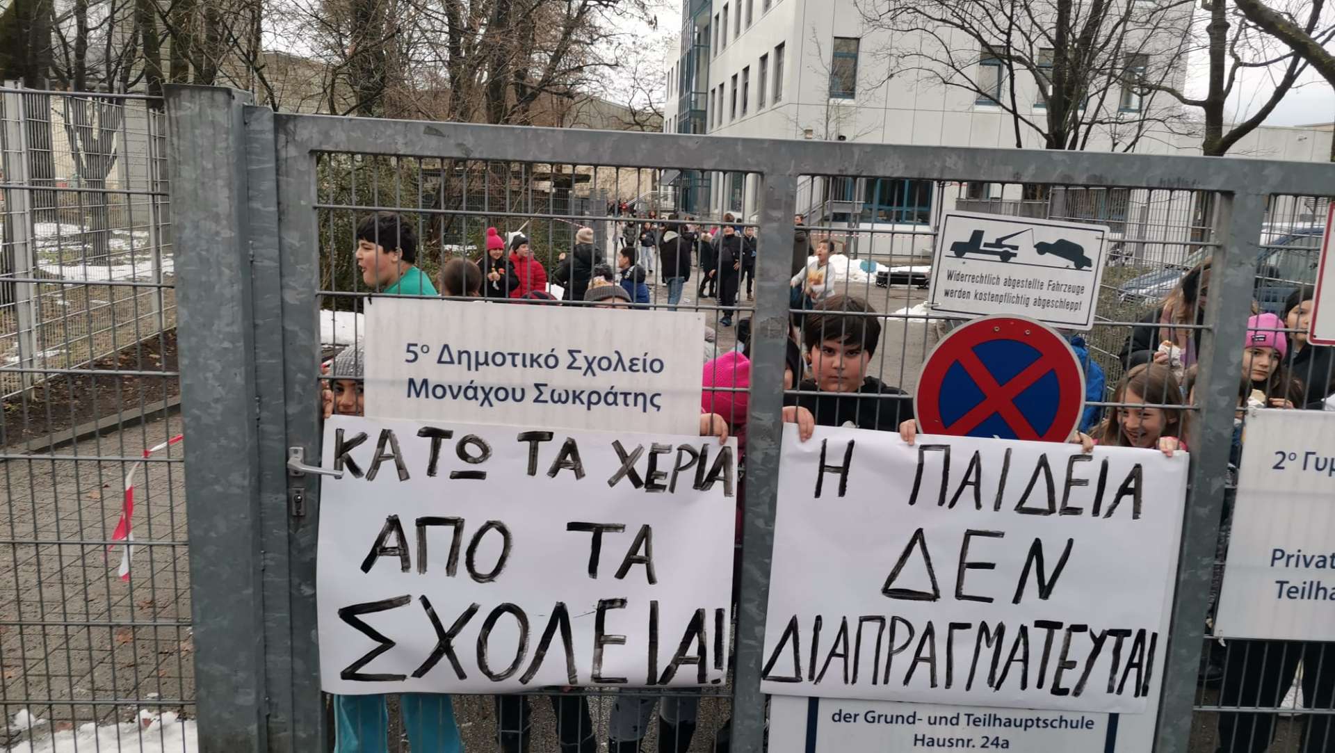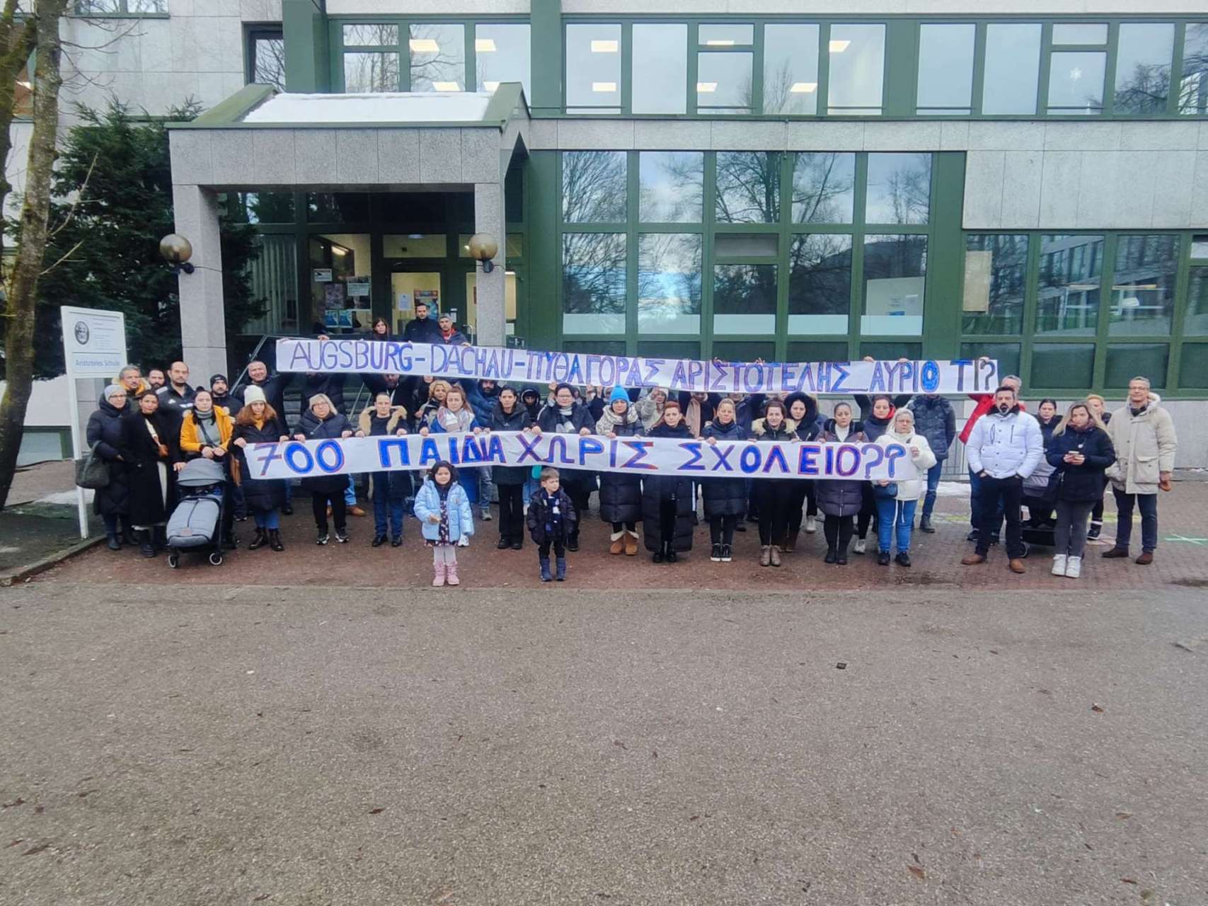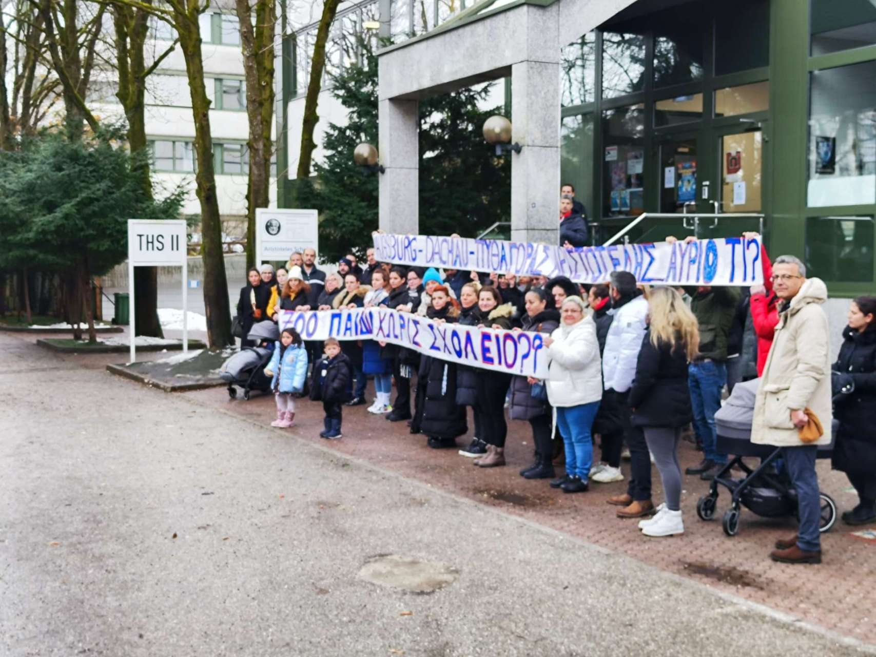 Σε χορό κινητοποιήσεων μπαίνουν οι σύλλογοι γονέων και κηδεμόνων στο Μόναχο με αφορμή το κτιριακό ζήτημα που ανέκυψε για το 4ο Δημοτικό Σχολείο «Αριστοτέλης» και το 1ο Γυμνάσιο Μονάχου. Συγκέντρωση διαμαρτυρίας πραγματοποίησαν σήμερα (11/12/2023) δεκάδες γονείς έξω από το χώρο του σχολείου «Αριστοτέλης» ως εκδήλωση της βούλησής τους να δώσουν τη μάχη για τη διατήρηση του σχολείου, όπως λέει στην ΕΡΤ ο πρόεδρος του Συλλόγου Γονέων και Κηδεμόνων του 4ου δημοτικού, Στέφανος Σοφίας. Αντίστοιχες εκδηλώσεις συμπαράστασης πραγματοποιήθηκαν και στα άλλα δύο σχολεία του Μονάχου.