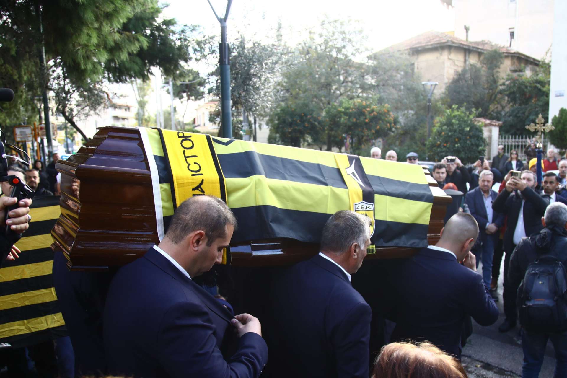Η ΑΕΚ, με επικεφαλής τον διοικητικό ηγέτη της Δημήτρη Μελισσανίδη, ήταν εκεί. Ο πρόεδρος της ΠΑΕ Ευάγγελος Ασλανίδης, ο Α’ Αντιπρόεδρος και Διευθύνων Σύμβουλος Γιώργος Κοσμάς και σύσσωμη η διοίκηση, τα στελέχη του ποδοσφαιρικού τμήματος, ο εκ των αρχηγών της ομάδας Στίβεν Τσούμπερ, εκπροσωπώντας τους ποδοσφαιριστές, και βέβαια οι παλαίμαχοι της ομάδας μας βρέθηκαν κοντά στους οικείους του εκλιπόντος και τού απηύθυναν το ύστατο «χαίρε».